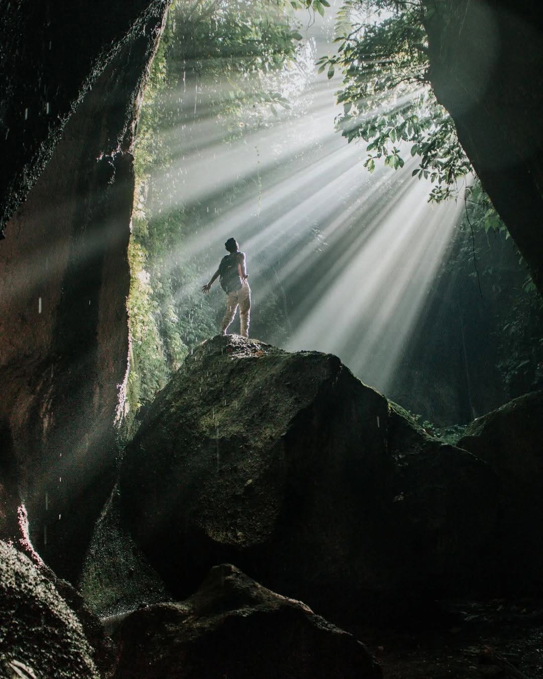 Air Terjun Tukad Cepung – потрясающий водопад, расположенный на Бали. Он знаменит своим уникальным расположением, поскольку водопад скрыт в каньоне. Посетители часто описывают его как волшебное и безмятежное место из-за того, что солнечный свет проникает сквозь деревья и освещает водопад, создавая красивую игру света и тени.